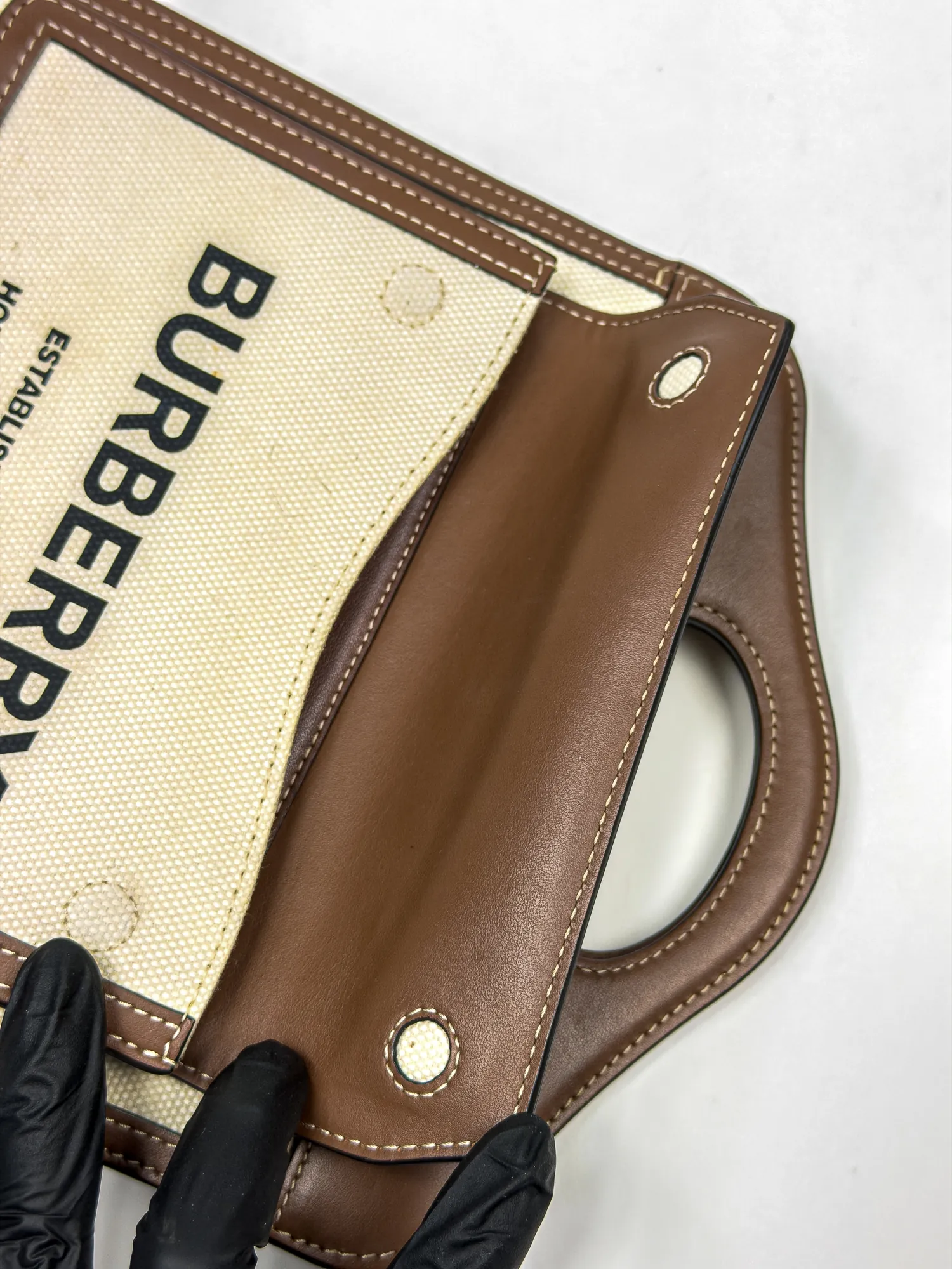버버리 미니 투톤 캔버스 레더 포켓백