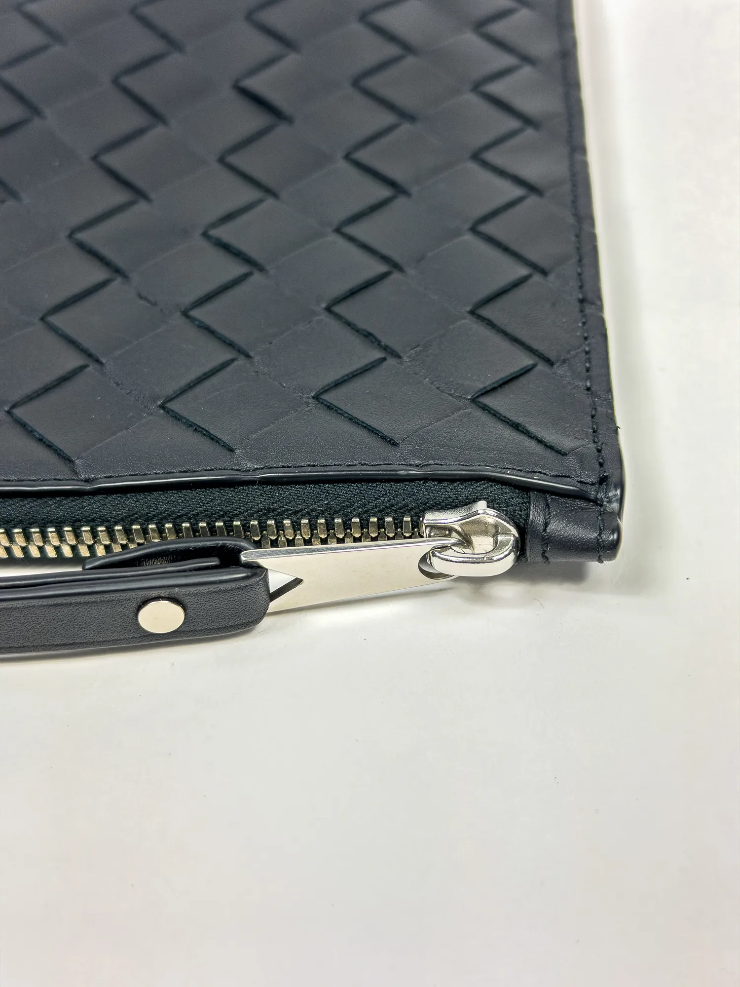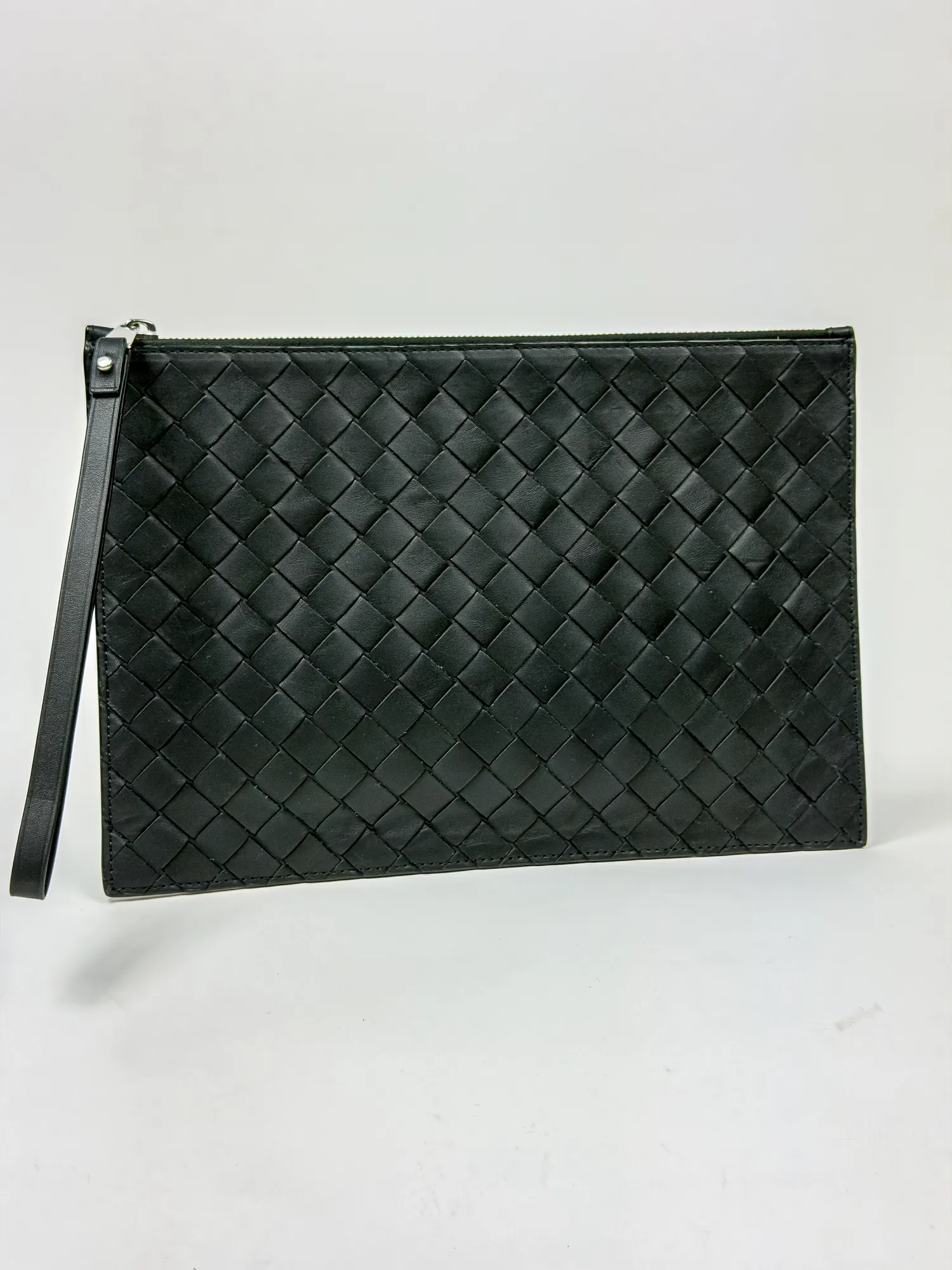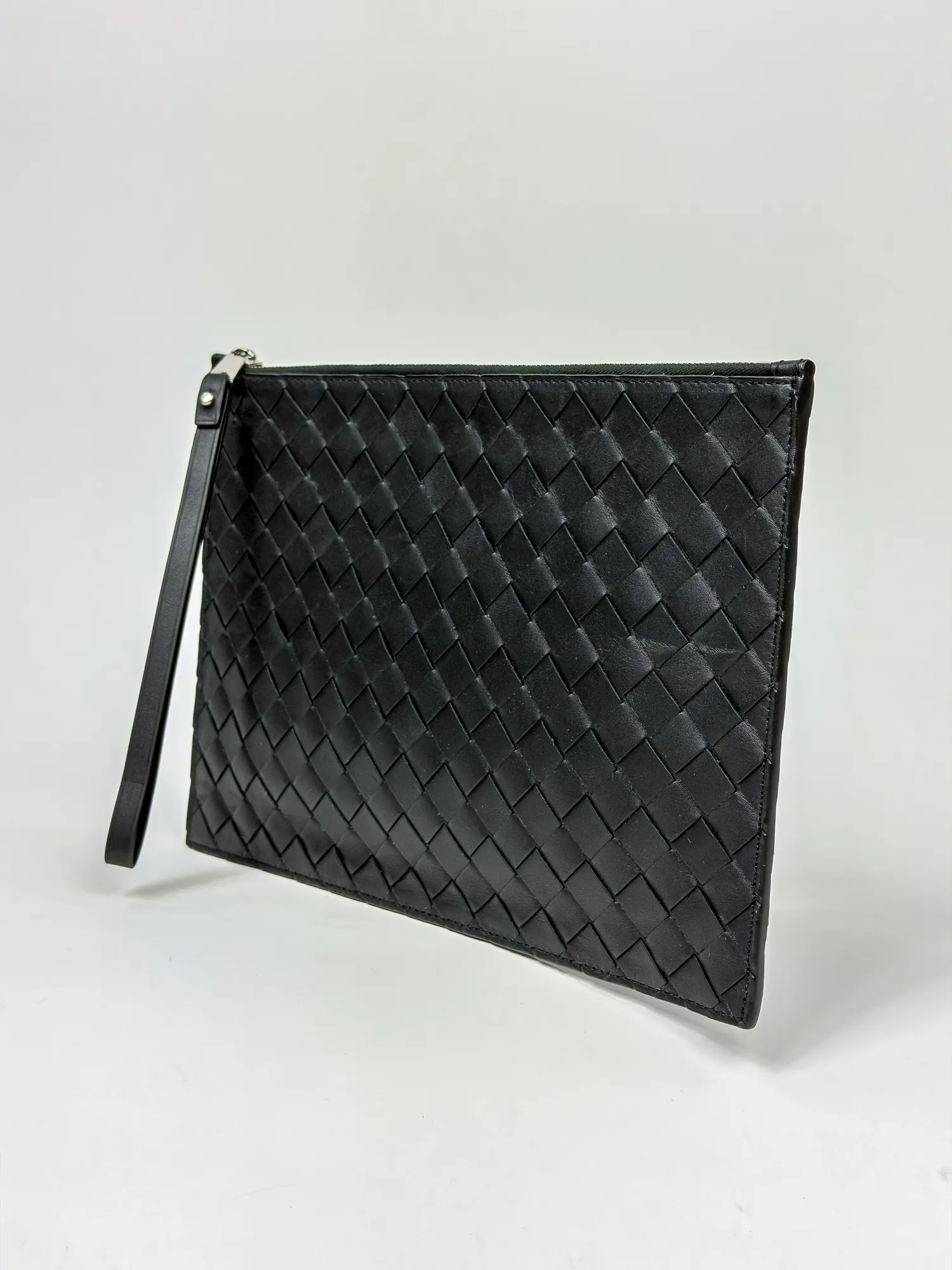 보테가 베네타의 보테가베네타 블랙 러버 인트레치아토 스트랩 미디엄 파우치입니다. 컨디션 등급 A(양호)으로 감정 완료된 정품입니다. 사이즈: 27×18×3 cm • Archived in Monchic Vault (몽시크 아카이브 등재 완료) • 전국 무료 배송