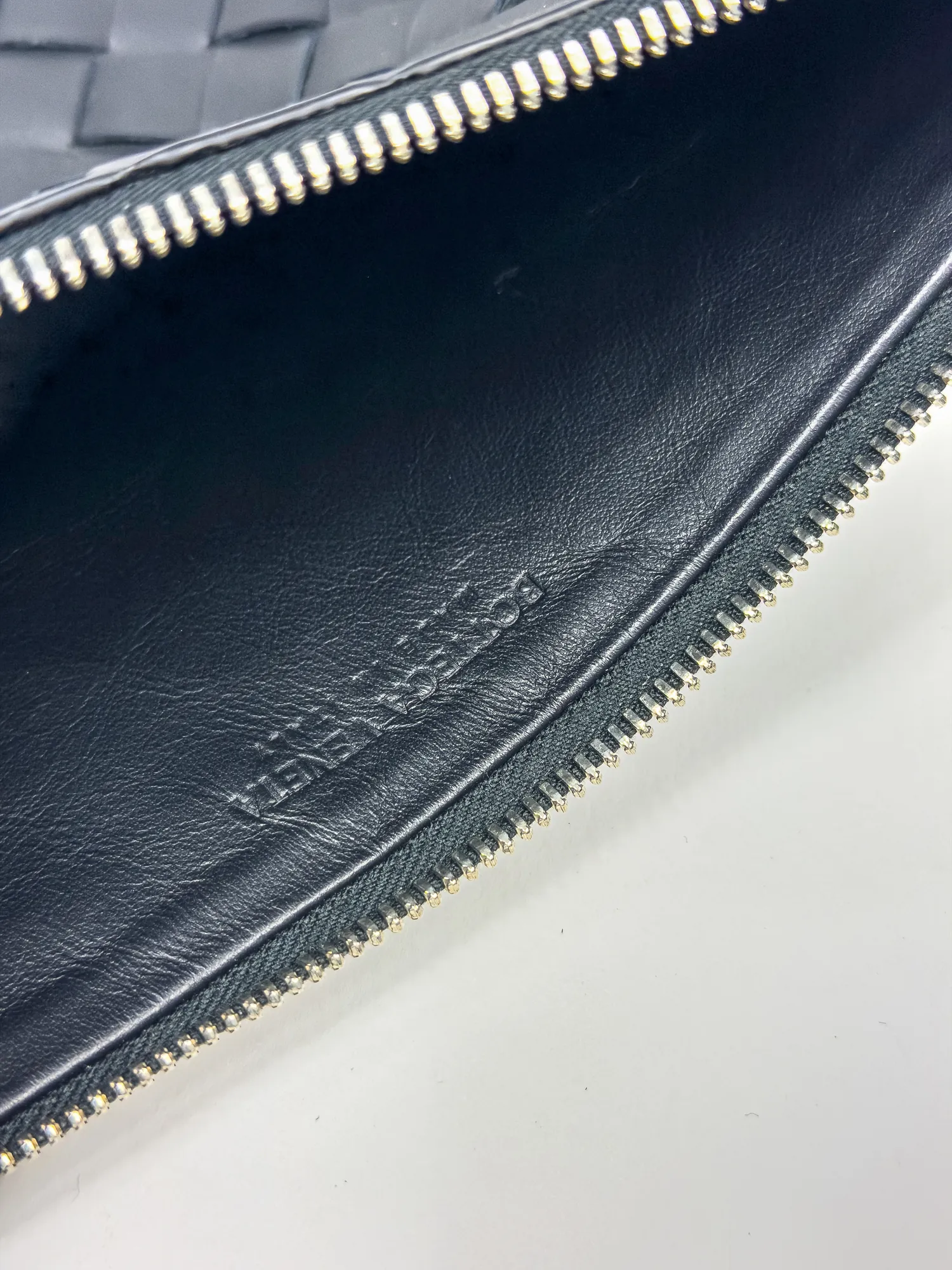 BOTTEGA VENETA 보테가베네타 블랙 러버 인트레치아토 스트랩 미디엄 파우치
