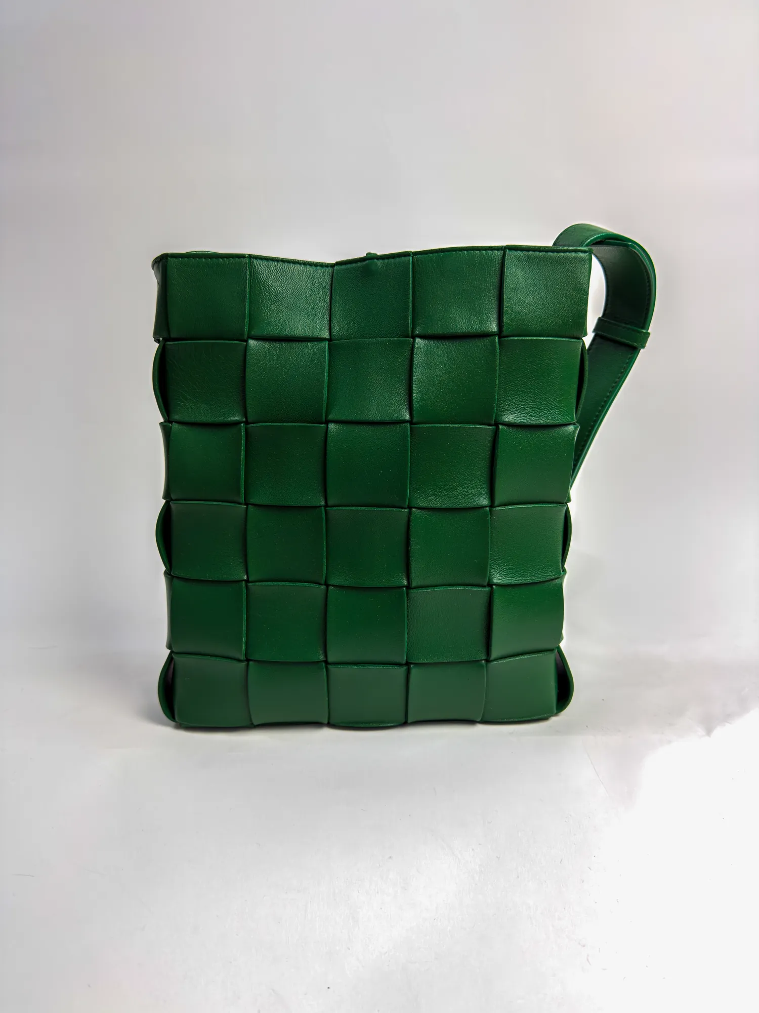 보테가 베네타의 보테가베네타 카세트 메신저백 그린입니다. 컨디션 등급 A(양호)으로 감정 완료된 정품입니다. 사이즈: 26×16×6 cm • Archived in Monchic Vault (몽시크 아카이브 등재 완료) • 전국 무료 배송