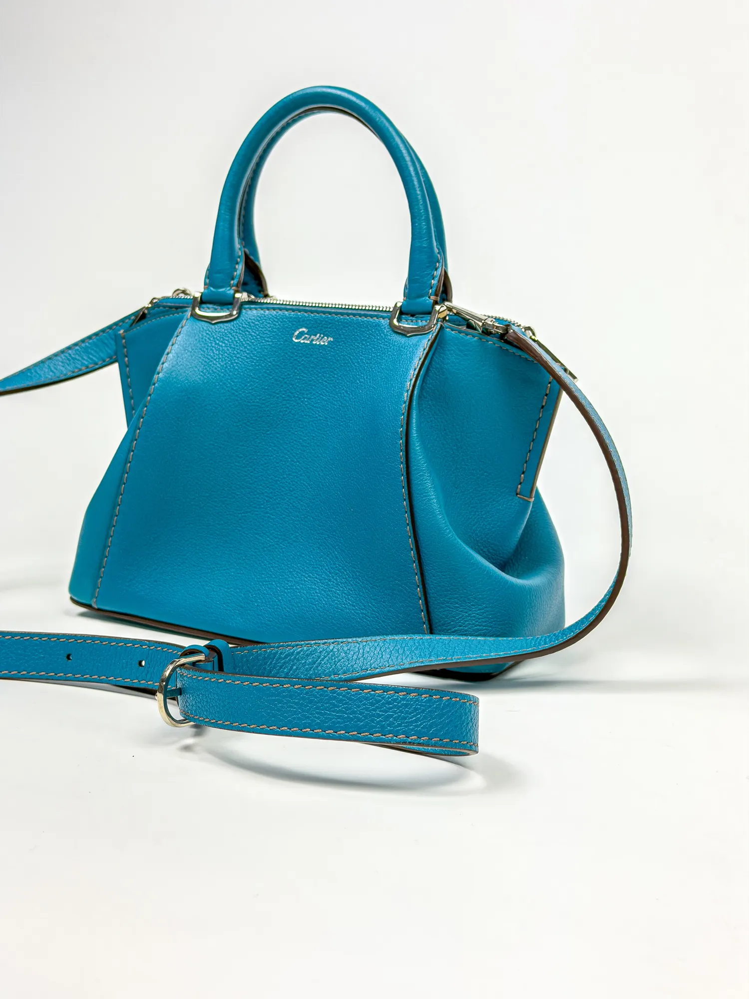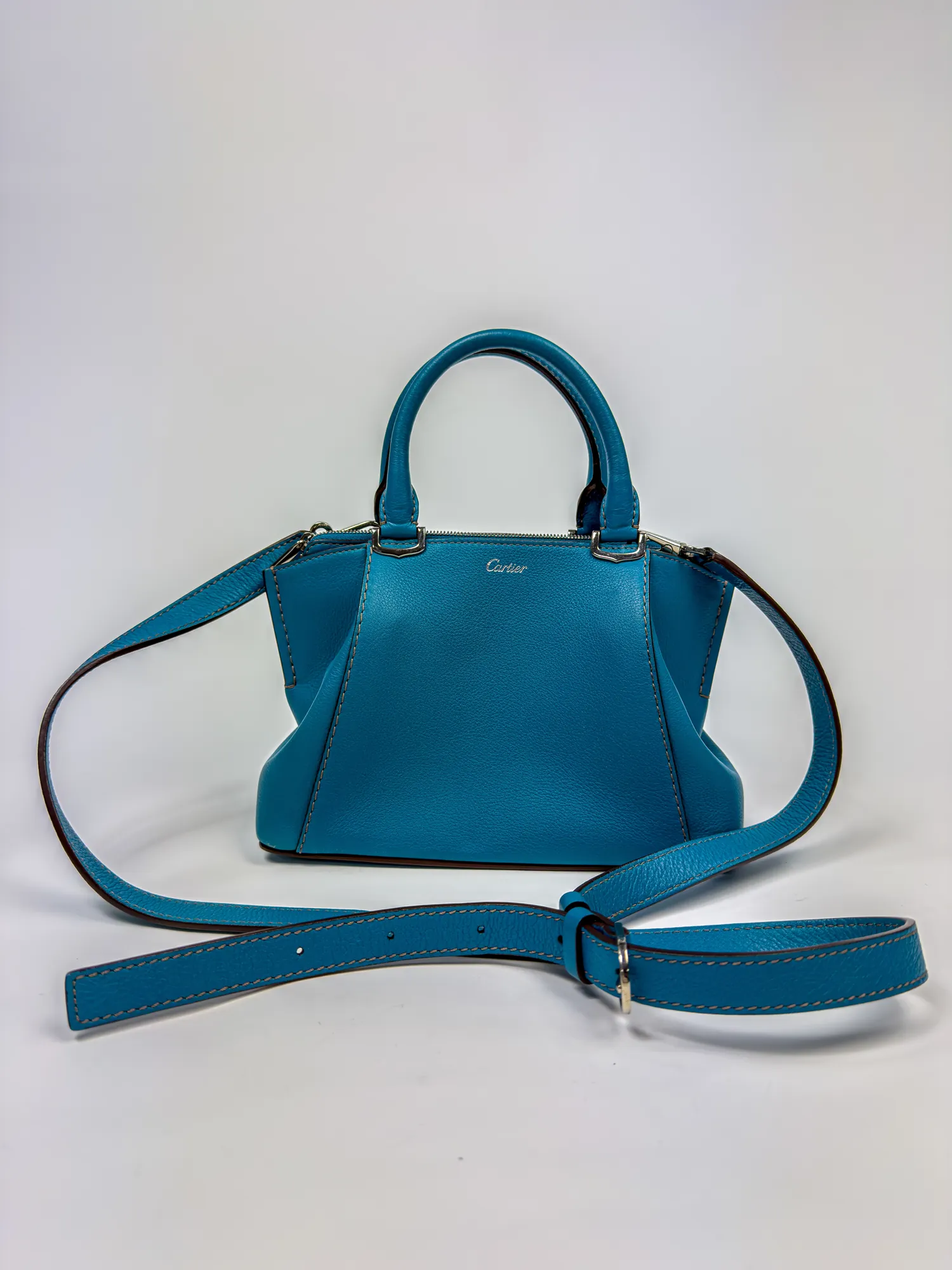 까르띠에의 까르띠에 블루 레더 미니 C 드 까르띠에 핸드백입니다. 컨디션 등급 A(양호)으로 감정 완료된 정품입니다. • Archived in Monchic Vault (몽시크 아카이브 등재 완료) • 전국 무료 배송
