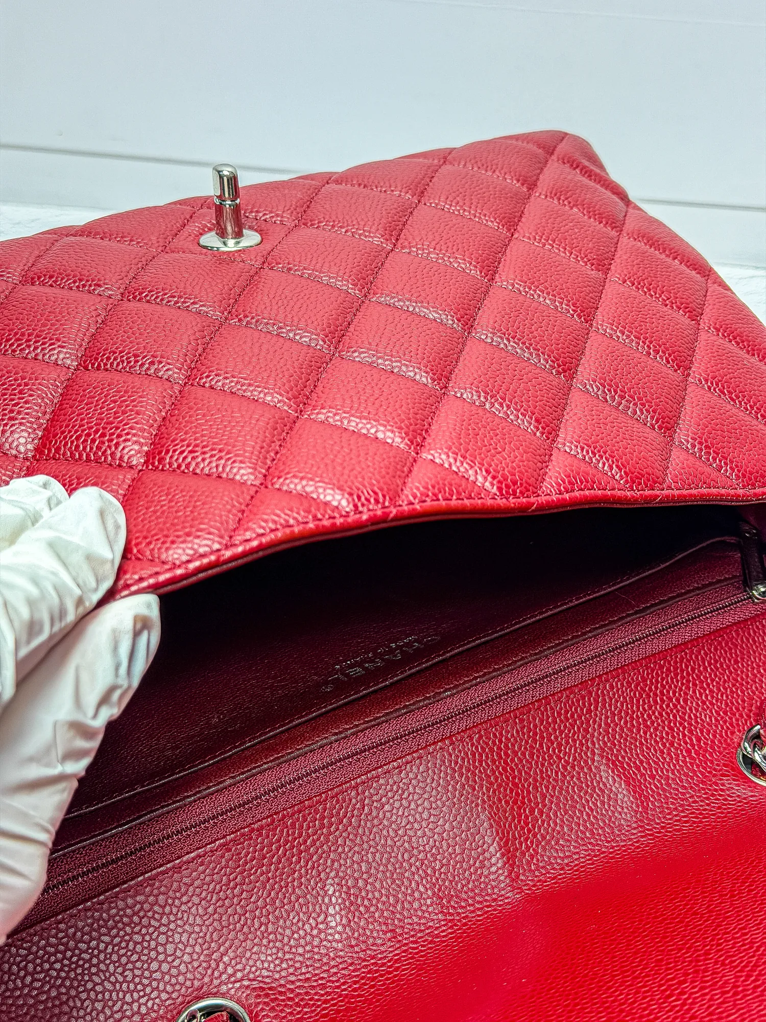 샤넬의 샤넬 클래식 라지/점보 레드입니다. 컨디션 등급 A(양호)으로 감정 완료된 정품입니다. 사이즈: 30×19.5×10 cm • Archived in Monchic Vault (몽시크 아카이브 등재 완료) • 전국 무료 배송