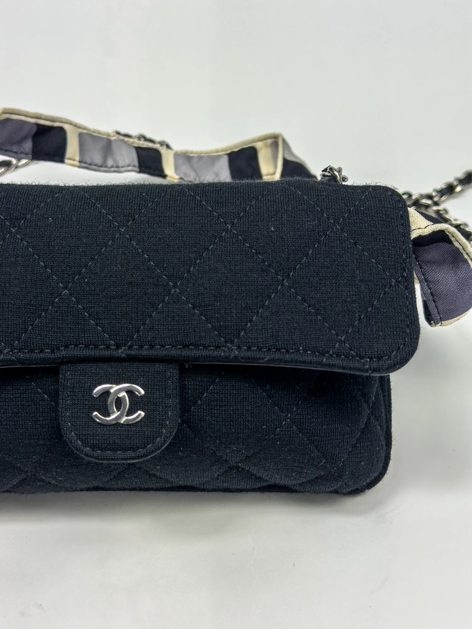 아이코닉한 디자인과 캔버스의 고급스러운 질감이 어우러진 CHANEL의 시그니처 피스입니다.