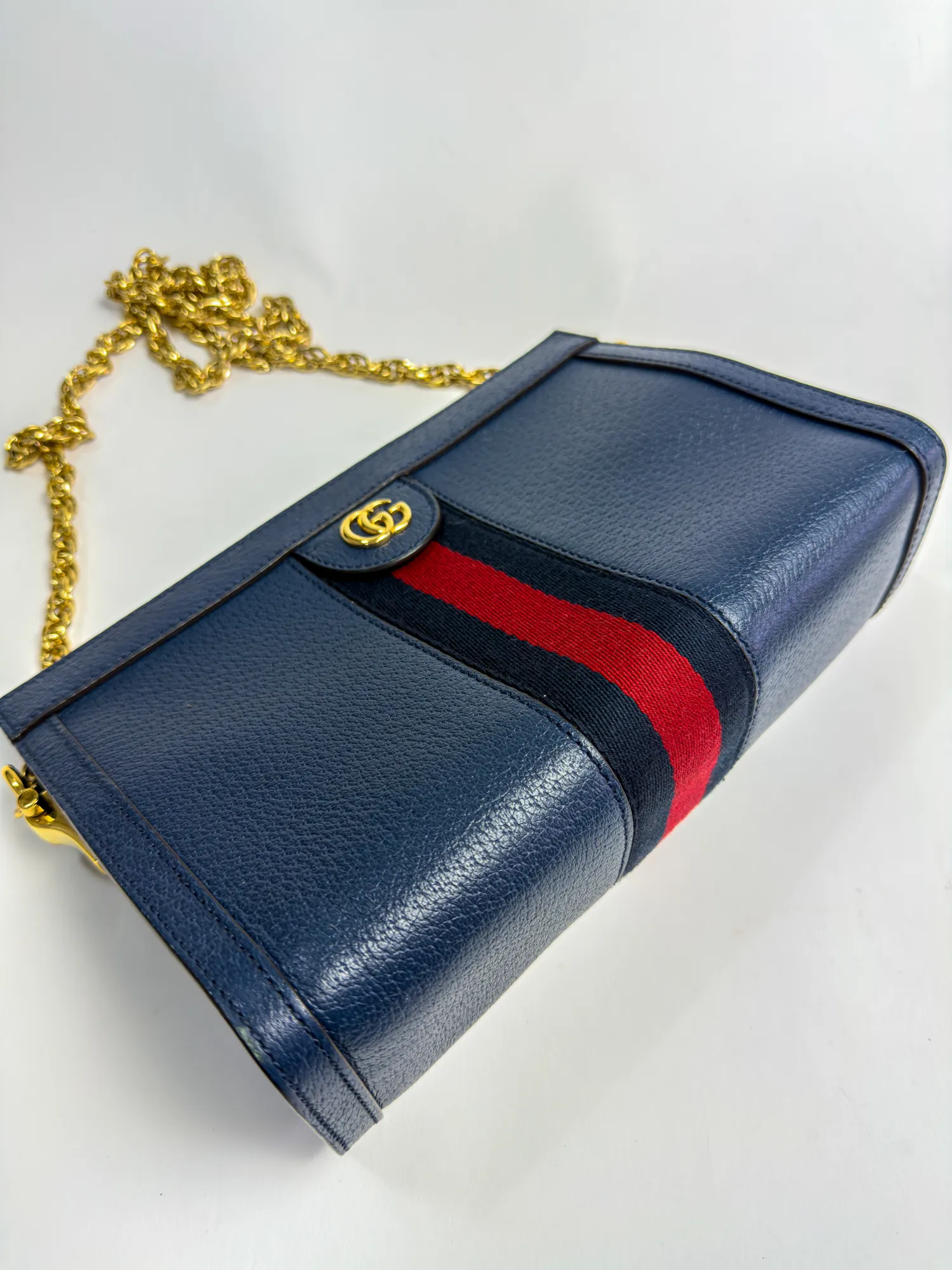 구찌 오피디아 GG 스몰 체인 숄더백 네이비