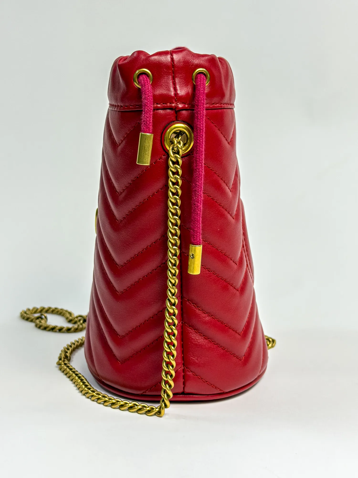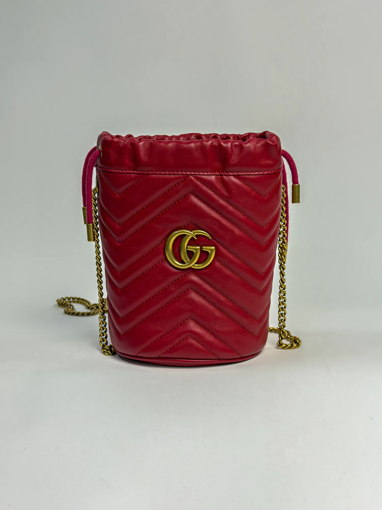 GUCCI 구찌 GG 마틀라세 미니 버킷백 레드