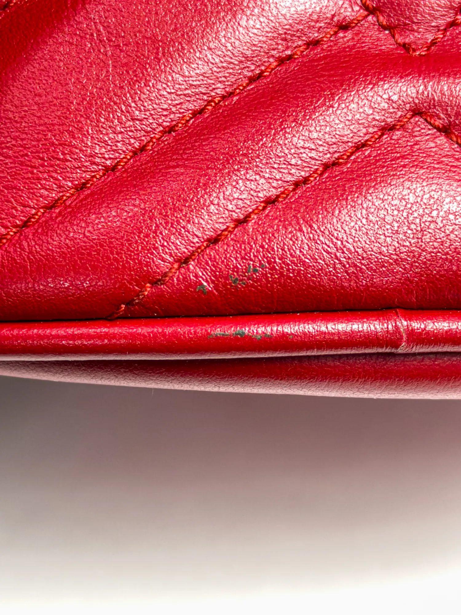 "레트로한 디자인과 마틀라세 레더의 고급스러운 질감이 어우러진 GUCCI의 시그니처 피스입니다. 레드 컬러 특유의 감성이 돋보이며, 호스빗 장식이(가) 포인트가 되어 빈티지한 매력을 더합니다. 계절과 트렌드를 초월하는 투자 가치를 지닌 아이템입니다. 전체적으로 깔끔하며 일상적인 사용감이 있는 양호한 상태입니다. 눈에 띄는 결함 없이 가성비 좋은 상태입니다."