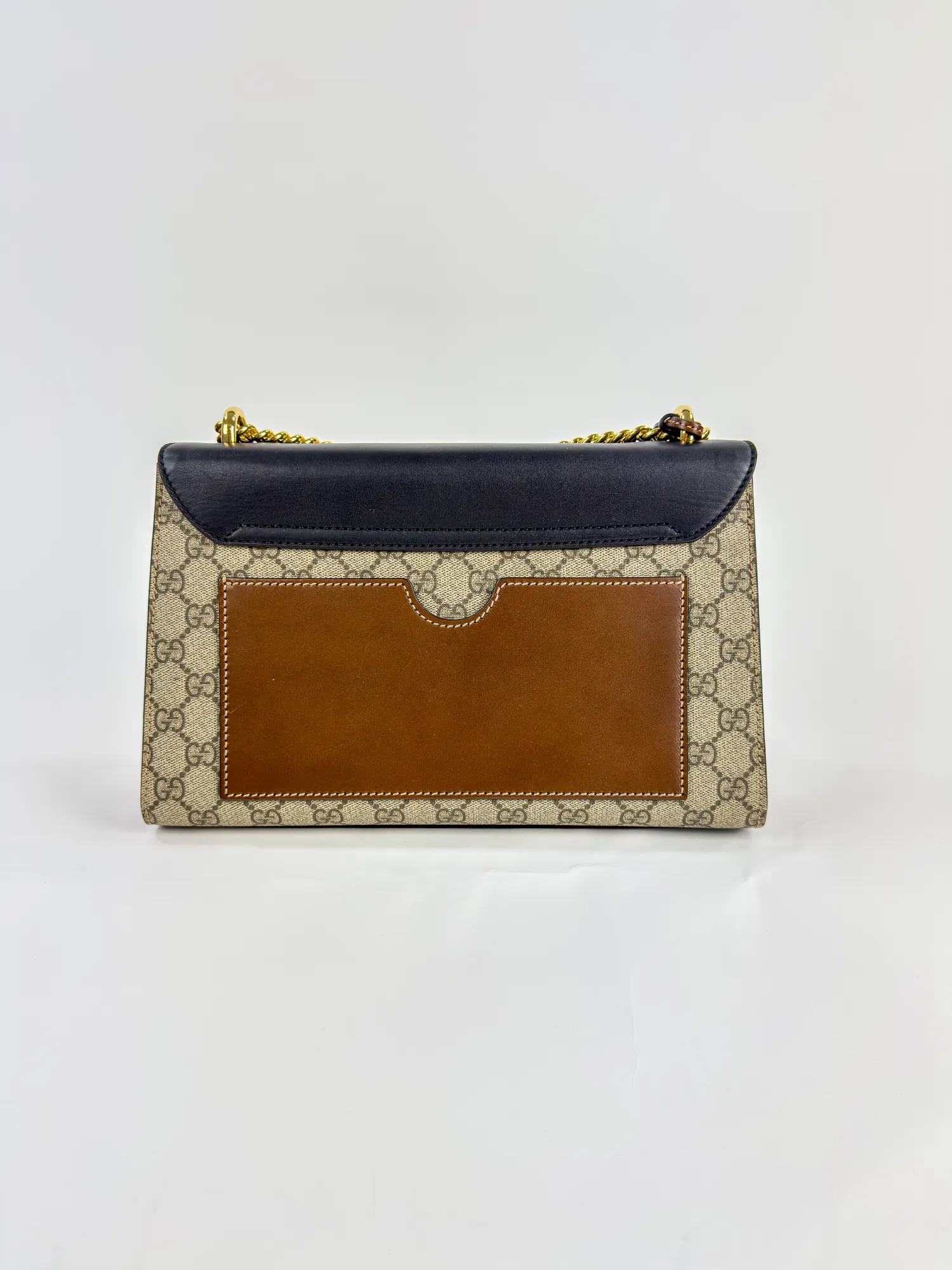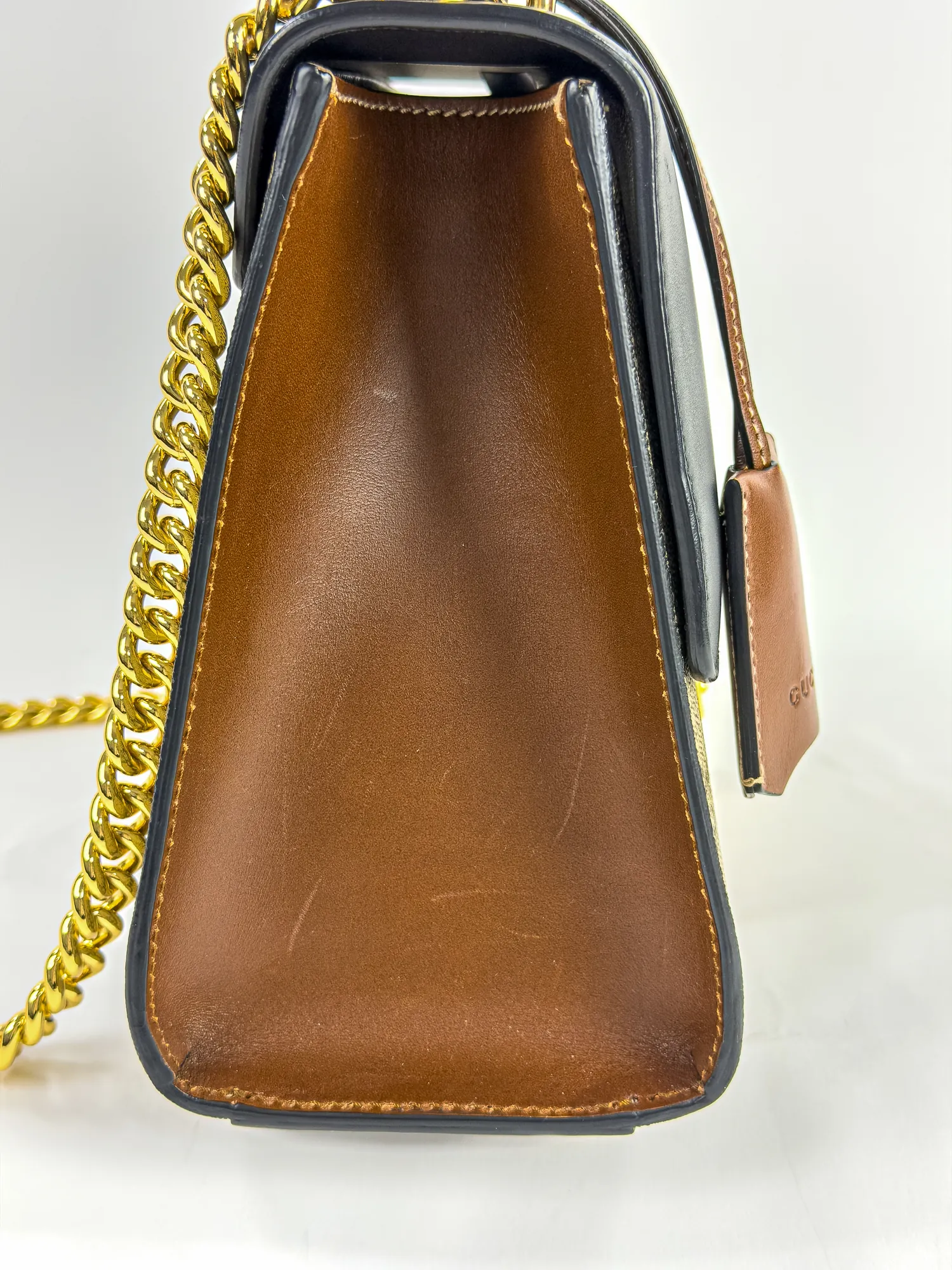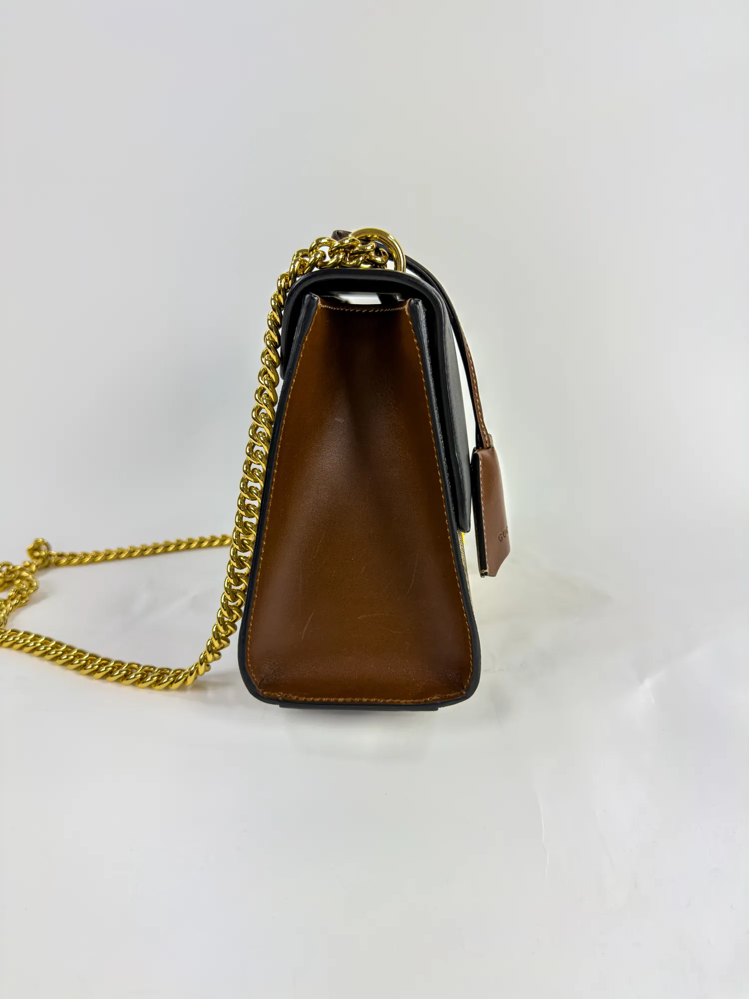 GUCCI 구찌 패들락 미디엄 GG 캔버스 레더 체인 숄더백