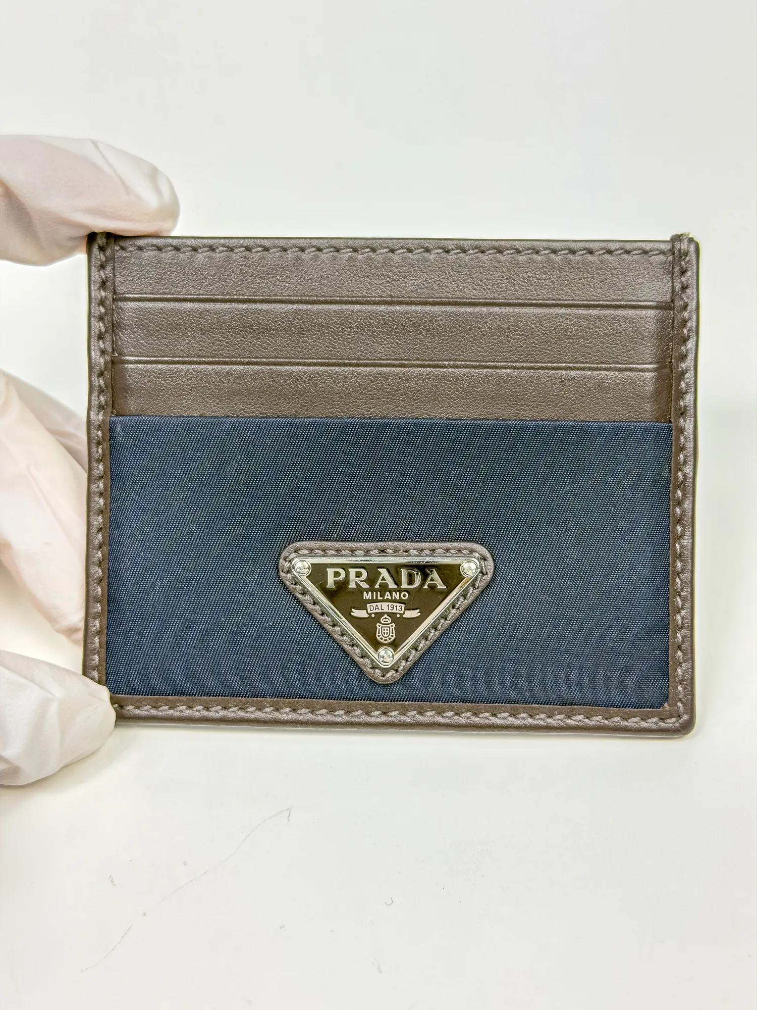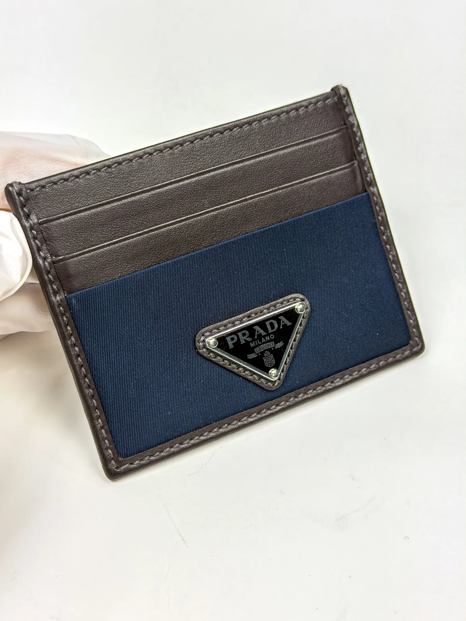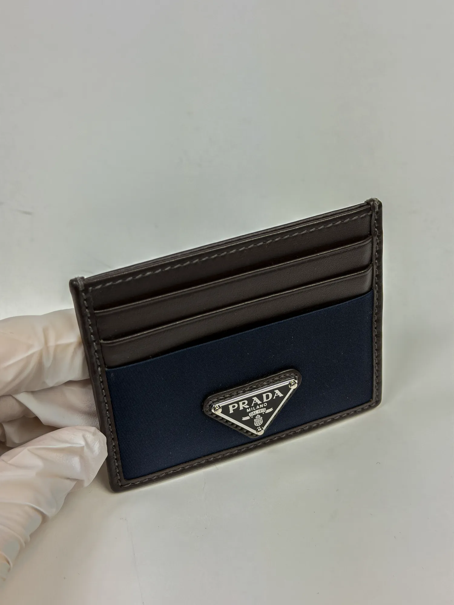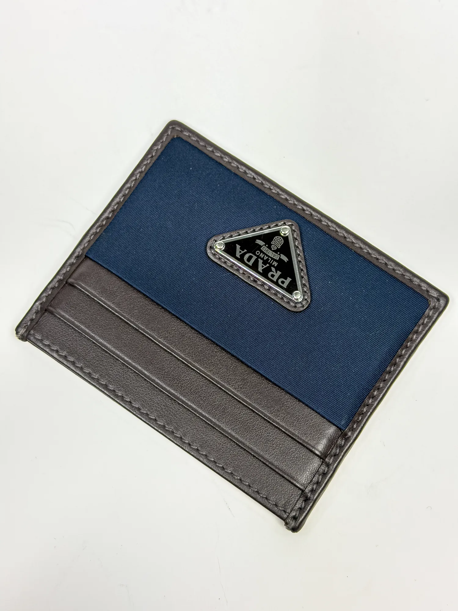 PRADA 프라다 리나일론 및 가죽 카드 지갑 블루/커피