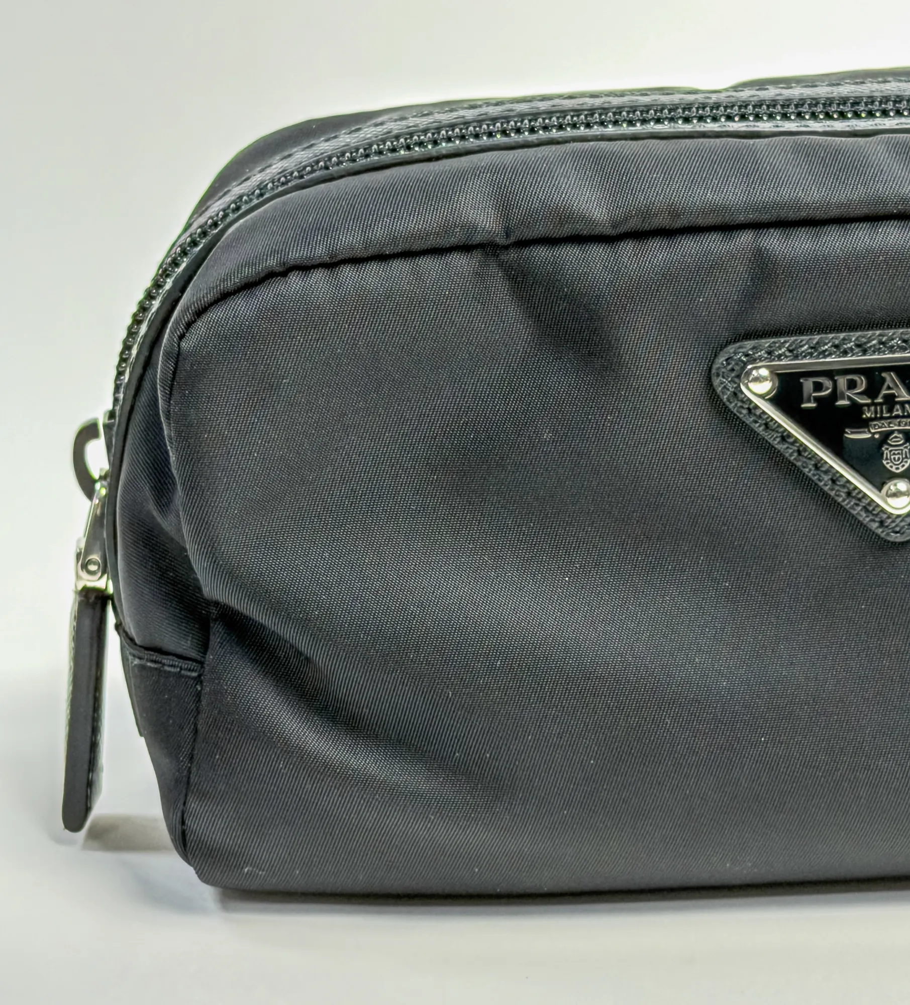 프라다의 프라다 2NA045 리나일론 트래블 파우치입니다. 컨디션 등급 A(양호)으로 감정 완료된 정품입니다. 사이즈: 23×12×5 cm • Archived in Monchic Vault (몽시크 아카이브 등재 완료) • 전국 무료 배송