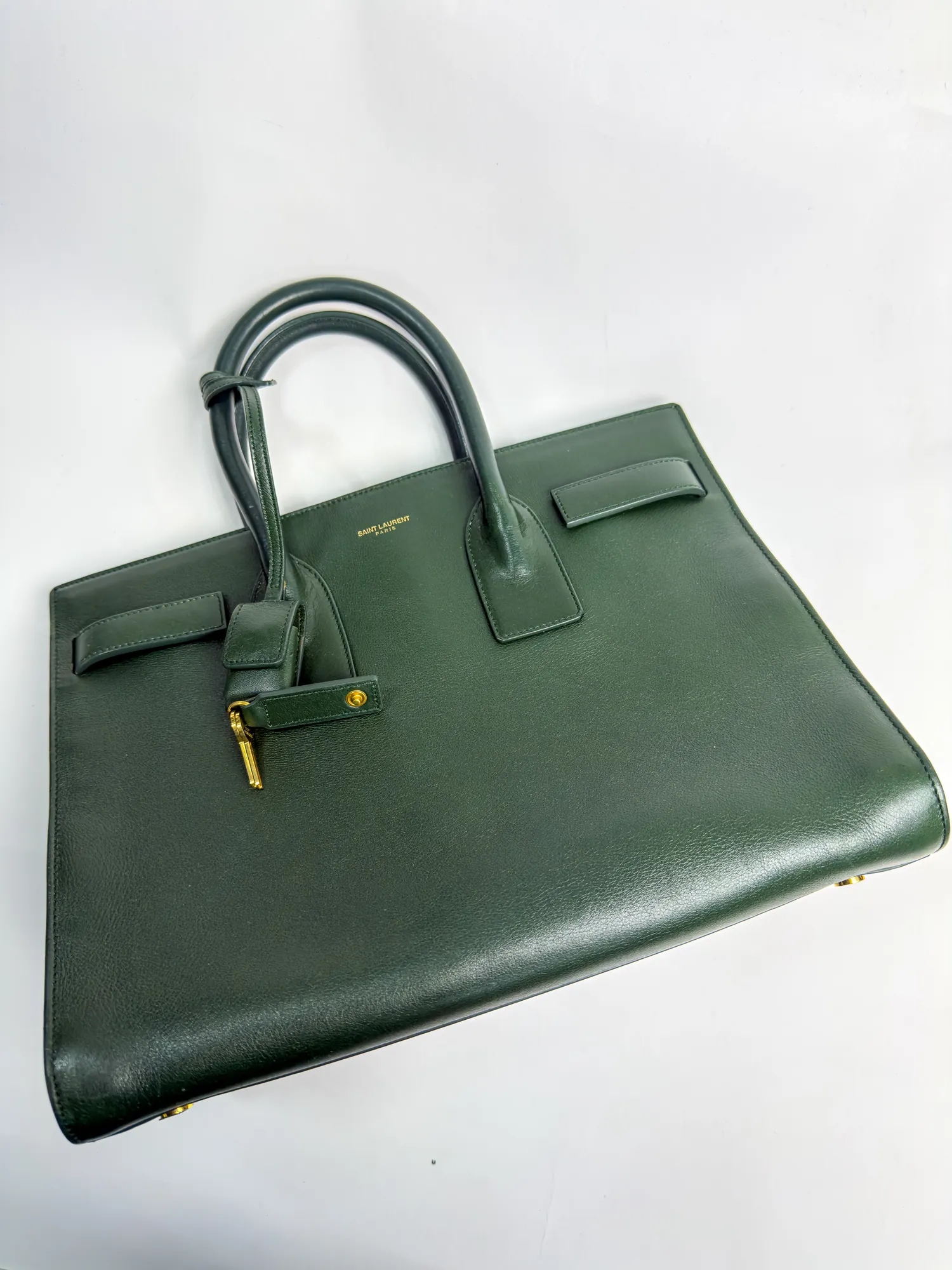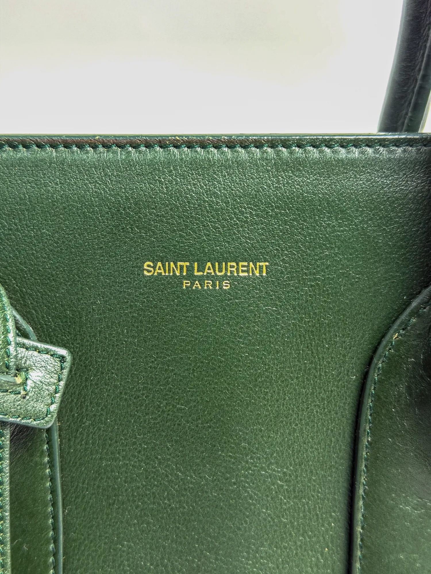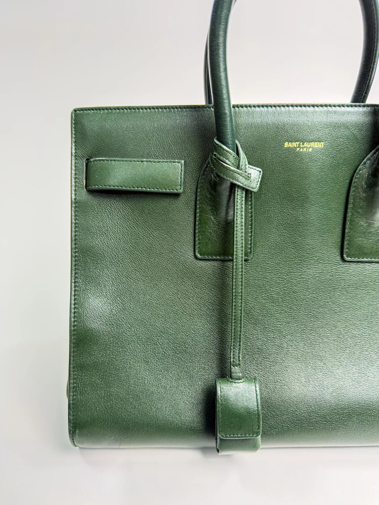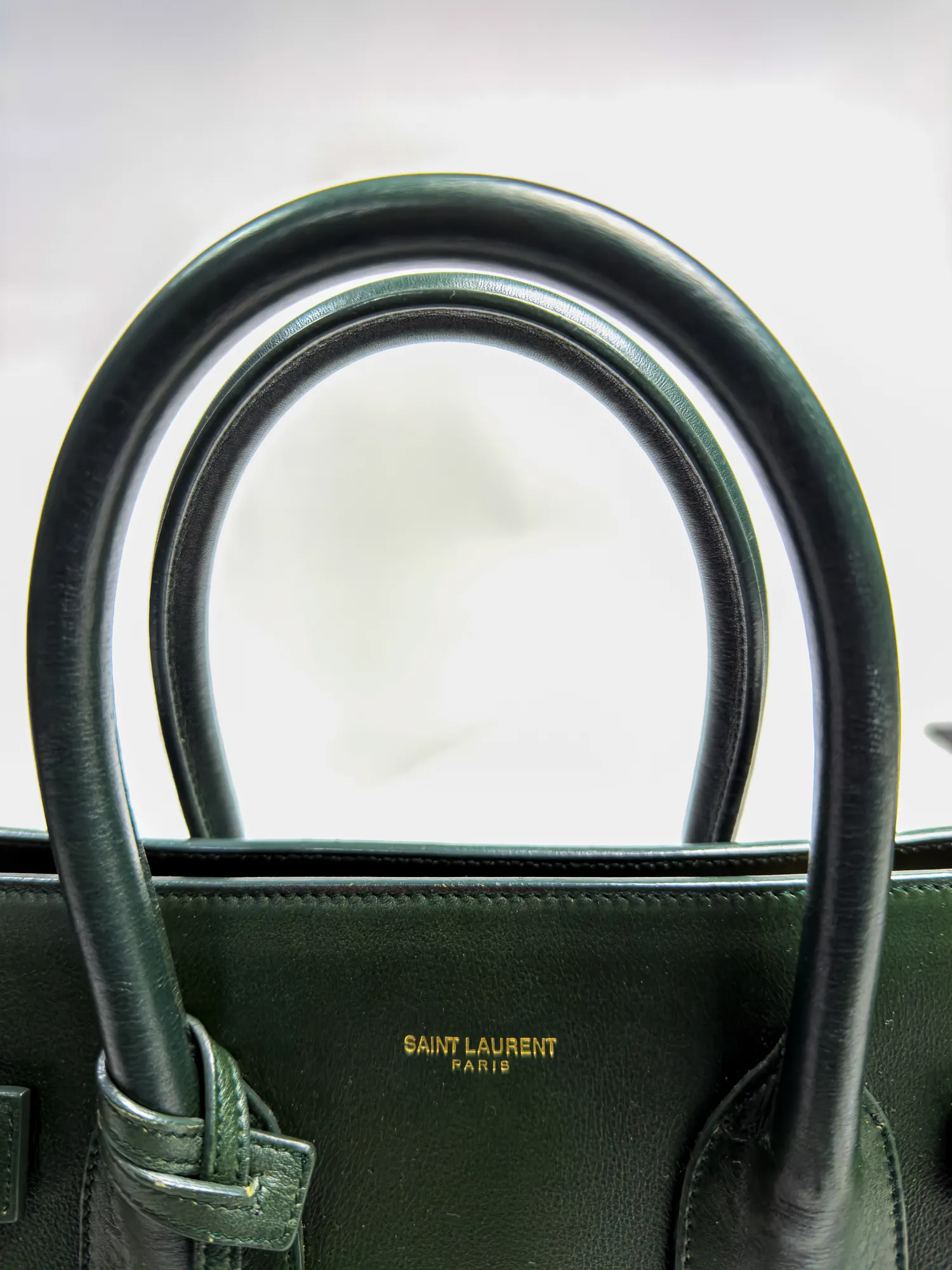 생로랑의 생로랑 삭드쥬르 스몰 토트 숄더백 그린입니다. 컨디션 등급 A(양호)으로 감정 완료된 정품입니다. 사이즈: 32×25×15.5 cm • Archived in Monchic Vault (몽시크 아카이브 등재 완료) • 전국 무료 배송