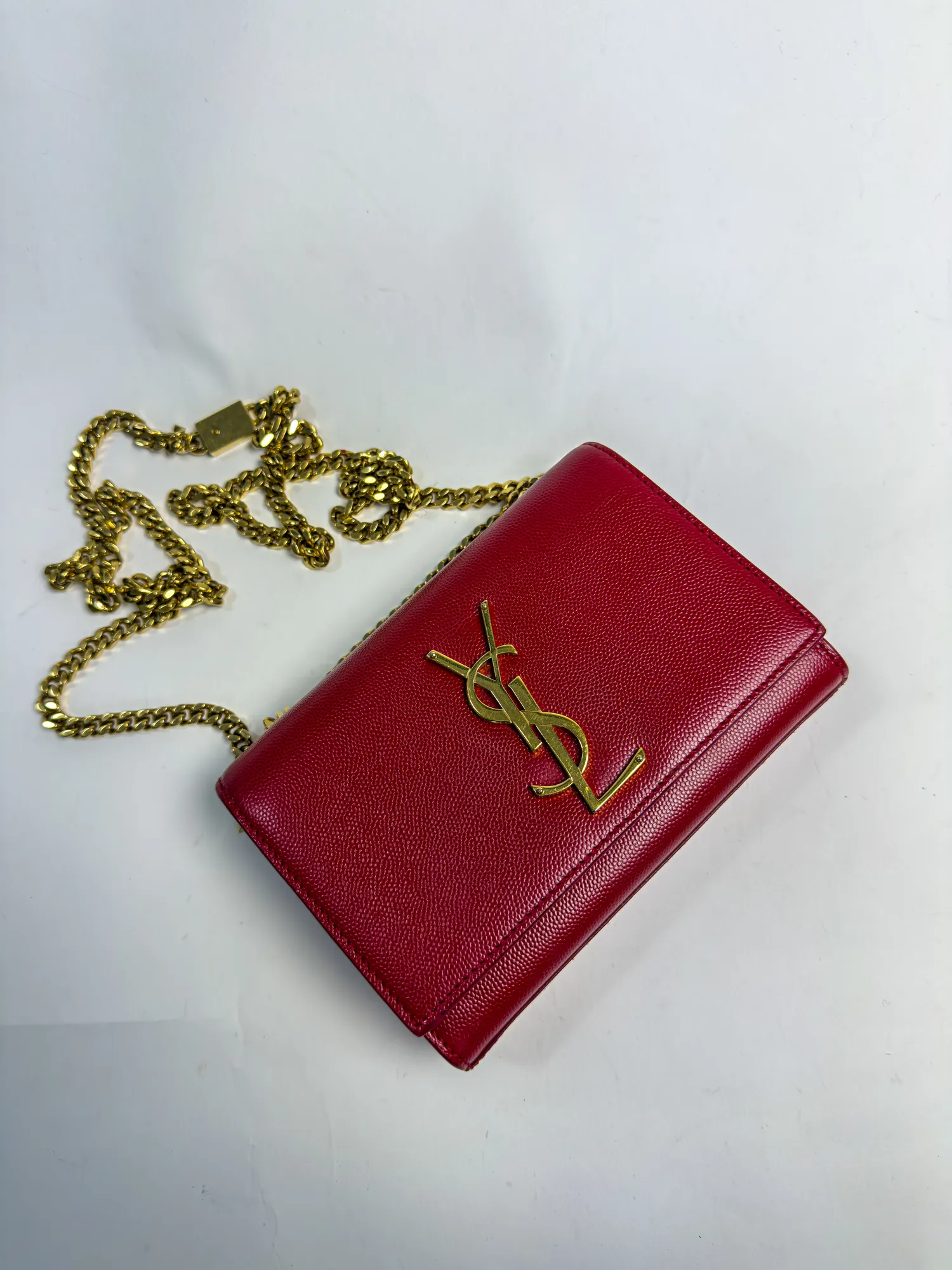 생로랑의 생로랑 케이트 스몰 레더 체인 숄더백입니다. 컨디션 등급 A(양호)으로 감정 완료된 정품입니다. 사이즈: 20×12.5×5 cm • Archived in Monchic Vault (몽시크 아카이브 등재 완료) • 전국 무료 배송