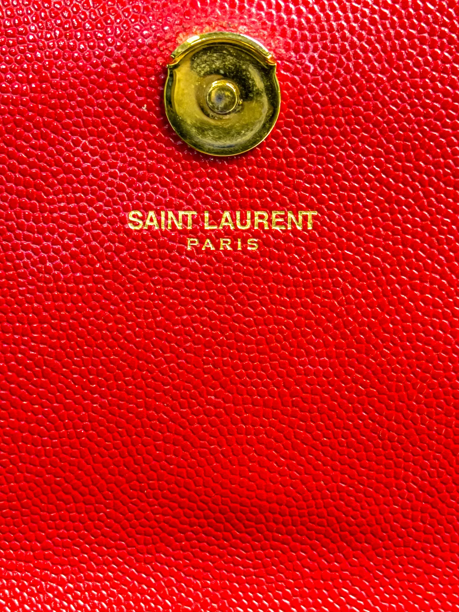 케이트 클러치 구매했어요. 파티용으로 완벽합니다. YSL 금장 로고가 포인트인데 상태가 아주 좋아요.