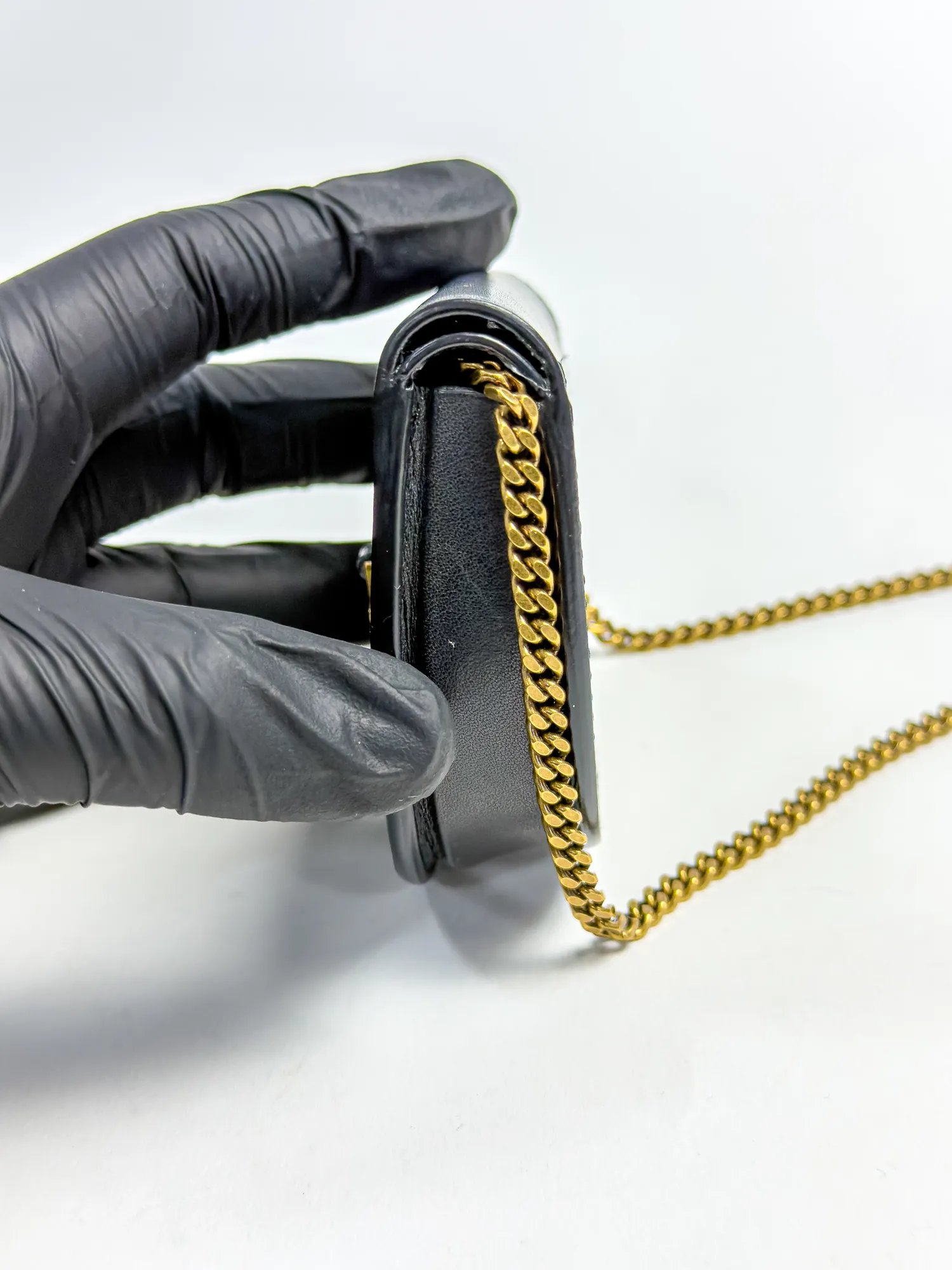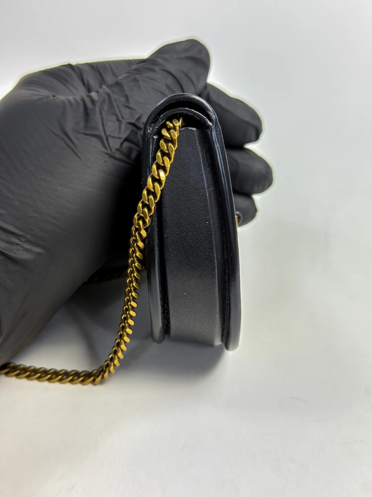 모던한 디자인과 카프스킨의 고급스러운 질감이 어우러진 SAINT LAURENT의 시그니처 피스입니다.